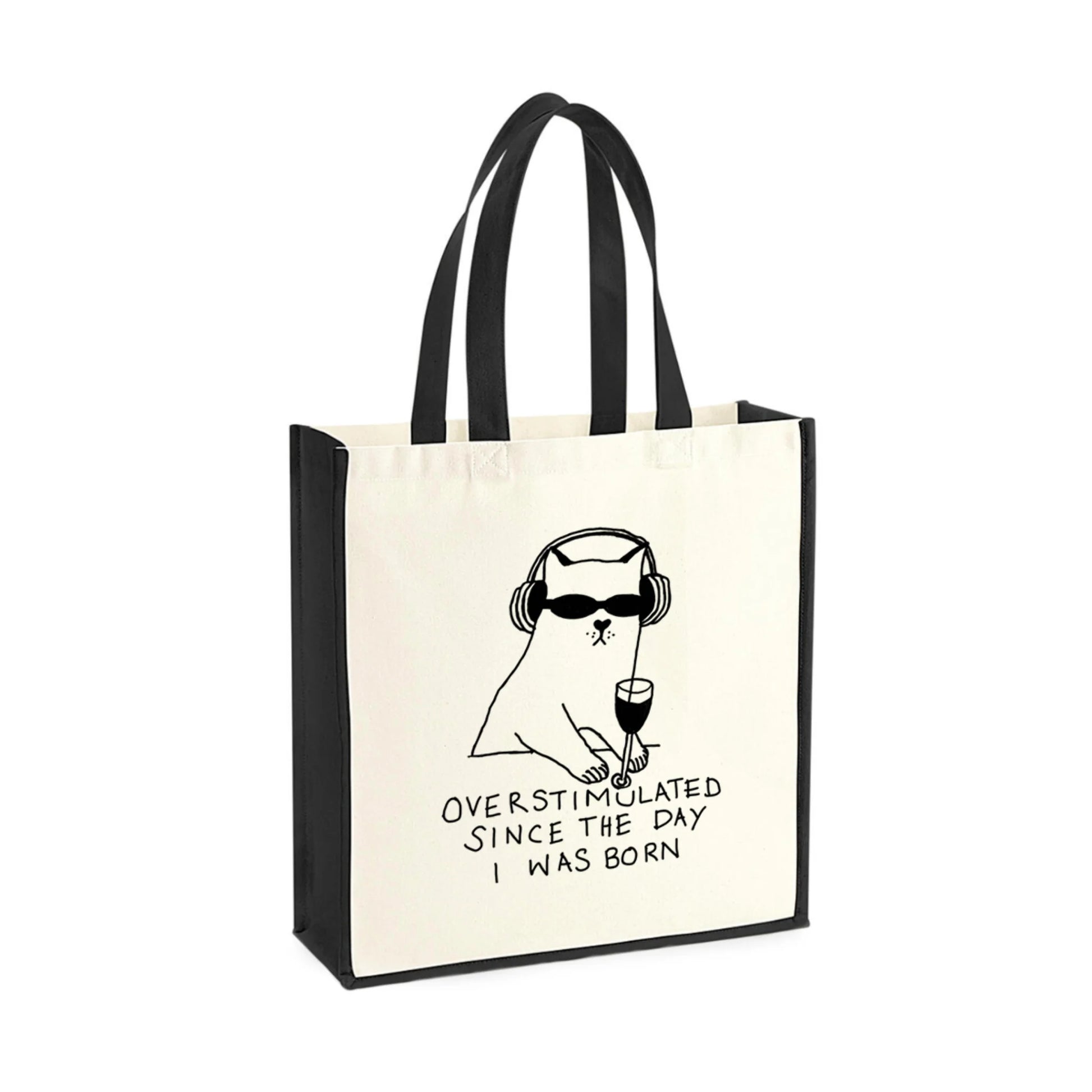 The Trumanshow Shopper Bag features ILIRA’s hand-drawn, overstimulated cat and her original handwritten quote, printed on premium heavyweight canvas. With contrast black handles and side panels, this tote levels up your sad-girl errands — in style and in structure.