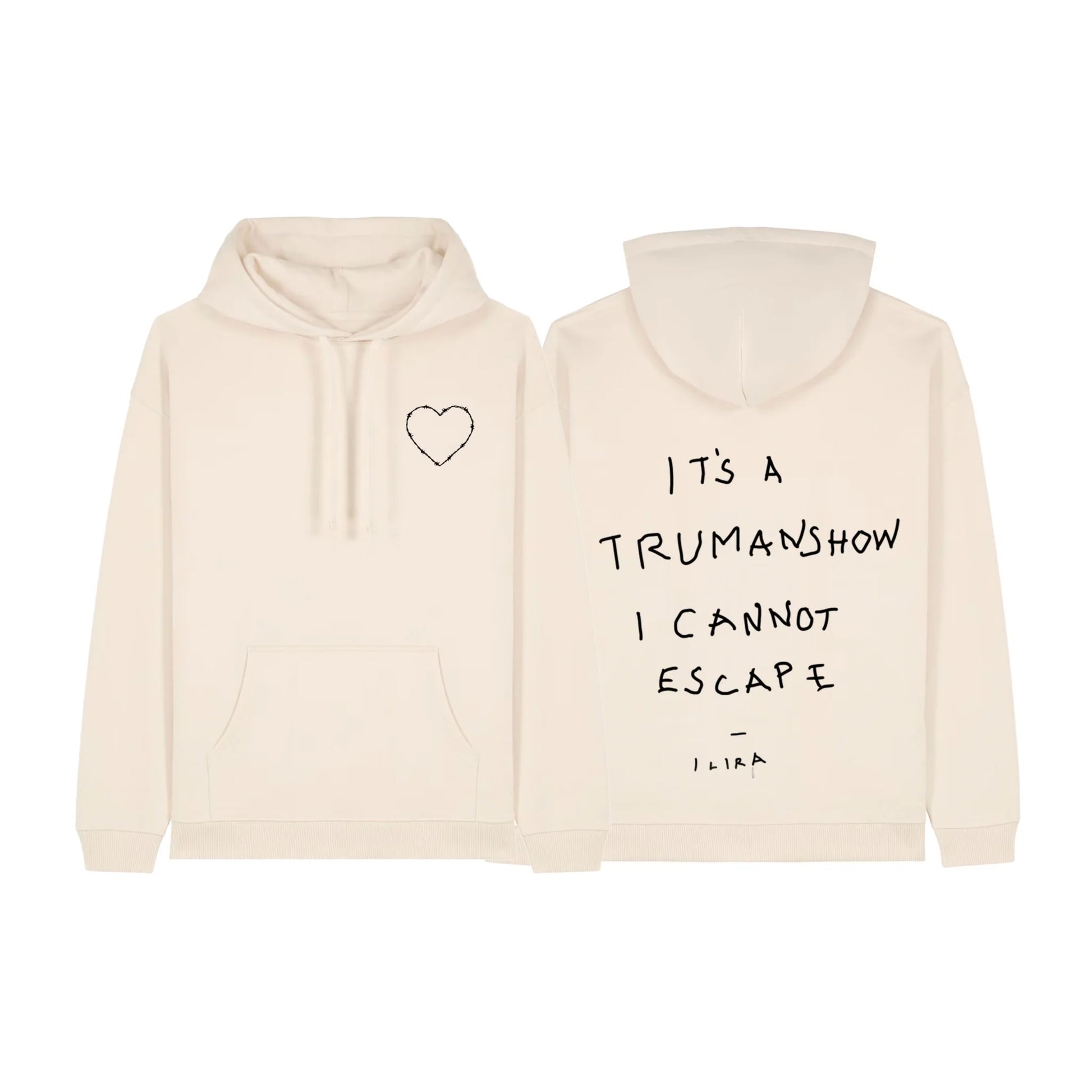 Back print: “It’s a TRUMANSHOW I CANNOT ESCAPE” – handwritten by ILIRA